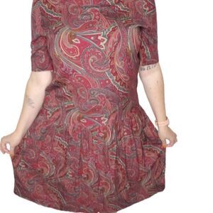 Vtg 1970s handmade paisley print drop waist dress. No size listed so please refer to measurements. Approximately 42" long.
