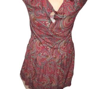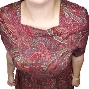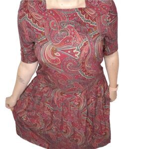 VINTAGE 70s paisley dress drop waist short sleeve square neck XL