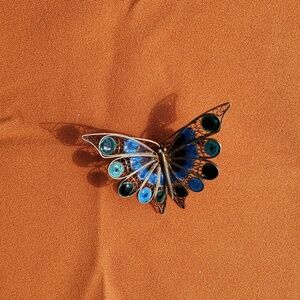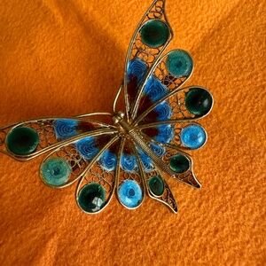 VINTAGE 800 Gold Filigree Butterfly and Glass Enamel Brooch