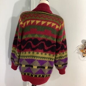 VINTAGE 80-90'S WOMAN ALSEINE LARGE KNIT WOOL BLEND JACKET LINED UNIQUE