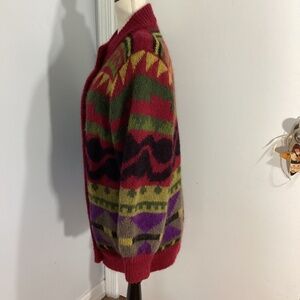 VINTAGE 90'S WOMAN ALSEINE LARGE KNIT WOOL BLEND JACKET LINED UNIQUE BUTTON UP