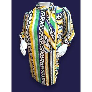VINTAGE 80'S ADELE SIMPSON MULTI PRINT MOD DRESS Sz 16