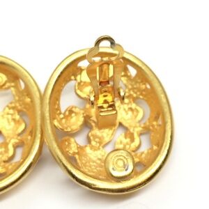 Beautiful VINTAGE 80s STATEMENT CLIP-ON EARRINGS by Anne Klein. Elegant openwork scroll design in rich brushed gold tone with stunning enamel accents in deep purple and vibrant red. These bold and ornate earrings are perfect for parties, runway looks, or special occasions.