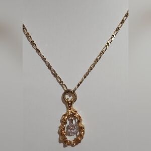 VINTAGE 80'S GOLD TONE 24 Inch FIGUERO NECKLACE WITH STUNNING CZ NUGGET PENDANT.