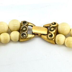 VINTAGE 80S NAPIER CREAM GOLD TONE NECKLACE ETRUSCAN MULTI STRAND ACRYLIC BEAD