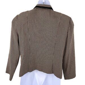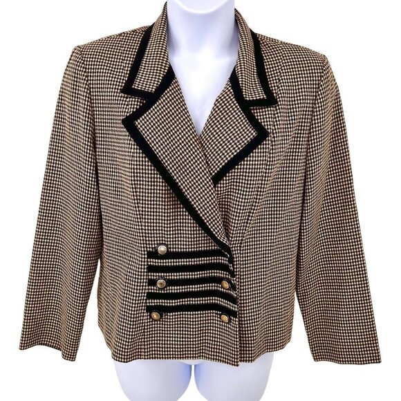 Such a cool vintage 1980's blazer jacket from Virgo II! Beige & black checker pattern with black trim, double breasted with decorative buttons. Vintage size 14 but fits like a modern large (please see approximate measurements below). Color(s) may vary slightly in pictures but are as close as possible. Polyester blend. MADE IN THE USA!!