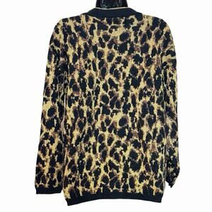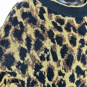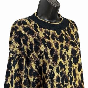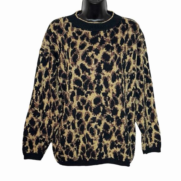 VINTAGE 80s 90s ANIMAL PRINT SWEATER GOLD METALLIC RETRO LEOPARD CHEETAH SZ M L