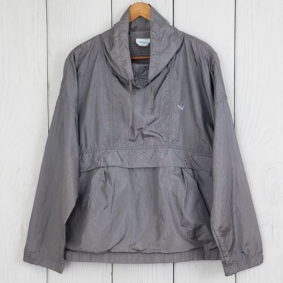 VINTAGE '80's ADIDAS size Medium Women's Gray Pullover Trefoil Logo Track Jacket