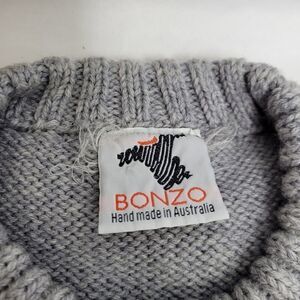 Vtg 1980s Bonzo grey wool kangaroo drop shoulder sweater with kangaroos on the front and back. Very unique sweater with a monochromatic kangaroo on both sides. Hand made in Australia.