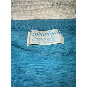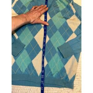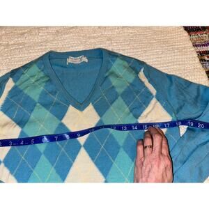 VINTAGE 80's BALLANTYNE SCOTLAND MERINO WOOL TURQUOISE ARGYLE VEE NECK SWEATER