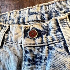 These Vintage 80s Brittania Acid Stone Wash Denim Light Blue Jeans in size 31W x 31L are a stylish addition to any casual wardrobe. Made of denim and featuring a grunge look, these original jeans from the 1980s are perfect for those looking for a retro vibe. The light blue color and regular fit make them versatile for everyday wear, while the 12-inch waist to hem length adds a unique touch to the classic design. Made in Mexico by the Brittania brand, these jeans are a true vintage find for fashion-forward individuals.