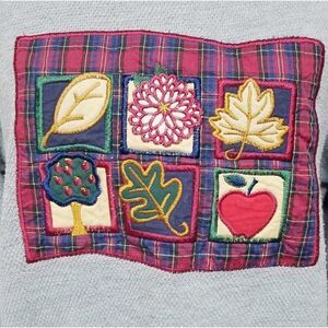 Plaid patch with Fall trees, flowers ,apples and leaves.