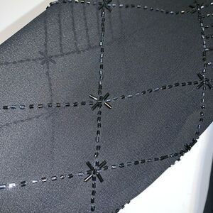 Sheer black chiffon fabric detailed with shiny black and silver under tone beading