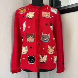 VINTAGE 80s Berek by Takako Sakon Red Cat Cardigan Sweater Medium