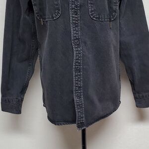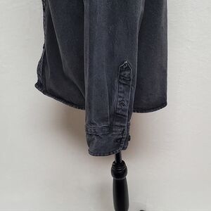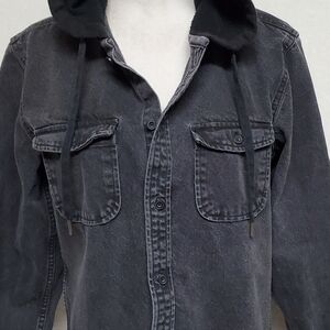 VINTAGE 80s Black Denim Contrast Hood Long Sleeve Button Up Grunge Jacket Medium