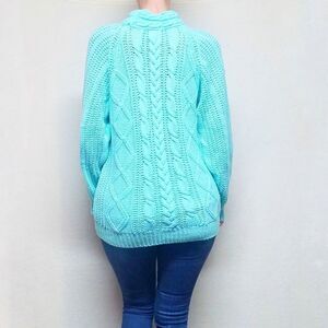 VINTAGE 80s Carriage Court Aqua Corded Sweater