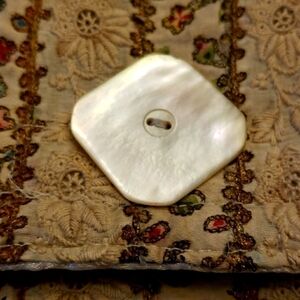 Vintage Brocade Fabric Clutch with Satin Lining and Mother of Pearl Button