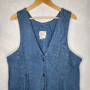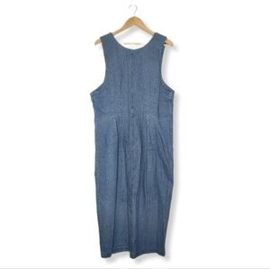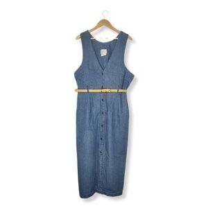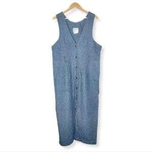 VINTAGE 80s Denim Button Front Maxi Dress With Belt Loops Plus Size
