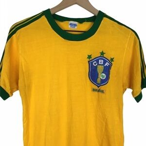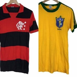 VINTAGE 80s Flamengo CBF Brasil Football Shirt Soccer Jerseys Red Yellow Black