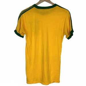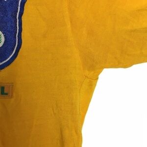Shirts are in acceptable vintage condition. Multiple flaws from wear & age. Yellow has staining all over. Red has a hole & stitching is loose. Both have twisted from washing/drying. See photos