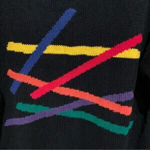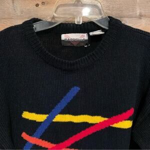 VINTAGE 80's Funky Retro Color Print Crew Neck Sweater By Gabrielle NY Black - M