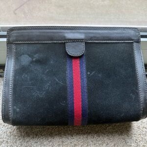 VINTAGE 80s GUCCI CLUTCH BLACK SUEDE HANDBAG PURSE