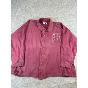 VINTAGE 80s Health Loom Soho New York Shirt Mens XL Maroon Button Up Knit Retro