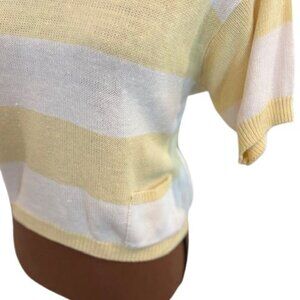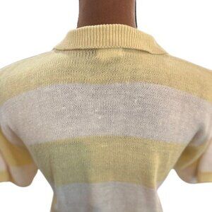 VINTAGE 80’s Kids Classics Collared Short Sleeve Yellow & White Striped Knit Tee – Size Kids L / Women’s S