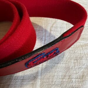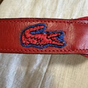 VINTAGE 80s Lacoste Belt Men Size 36 Red Leather Cotton Elastic Stretch Preppy