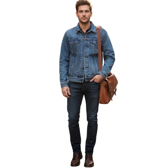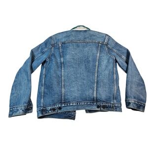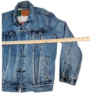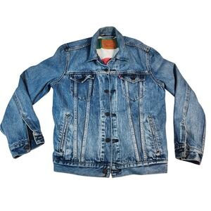 Keywords: Levi's, denim jacket, trucker jacket, blanket lined, striped lining, jean coat, mens jacket, medium, casual jacket, vintage style, retro jacket, outerwear, classic denim