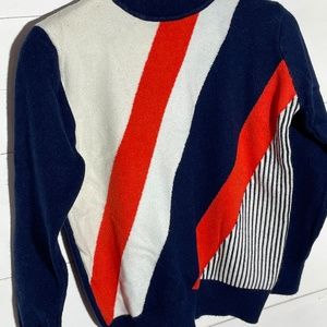 VINTAGE 80's Mock Turtleneck Striped Sweater: Red, white and blue! SMALL