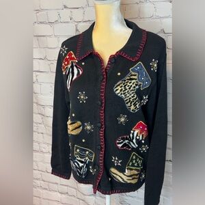 VINTAGE 80’s NOVELTY FUN CHRISTMAS SWEATER CARDIGAN ANIMAL PRINT STOCKING