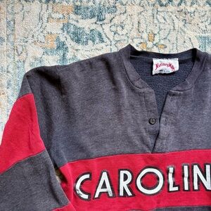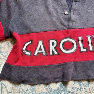 VINTAGE 80’s Nutmeg Mills CAROLINA Cropped Henley Jersey Sport Sporty Collegiate