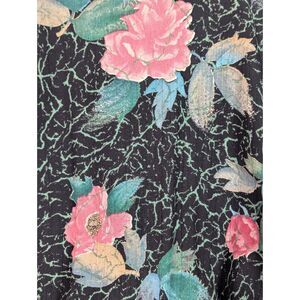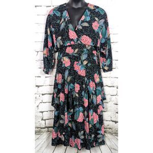VINTAGE 80s PHOEBE Black Floral Belted Layered Midi Dress Boho Cottage Size 12
