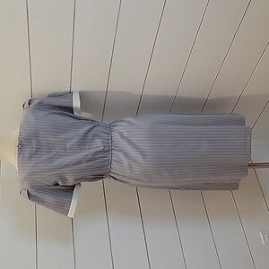 VINTAGE 80s Patty O'Neil midi dress grey with white pinstripes