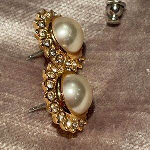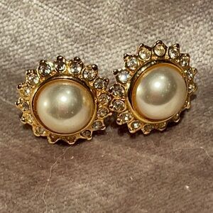 Vintage 80’s Faux Pearl Earrings with Crystals