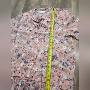 - blouse comes with a Brooch that is very pretty gold with a rose petals