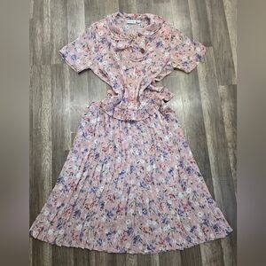 VINTAGE 80s Pink Alfred Dunner Skirt Set Cottagecore Grannycore Pleated Skirt