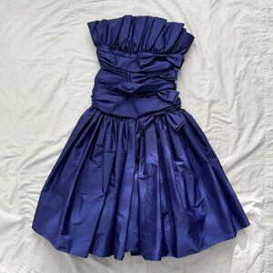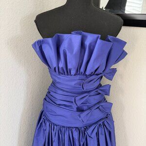 VINTAGE 80s Prom Glam Nili Martin Ruched Bow Strapless Purple Party Dress Sz XS