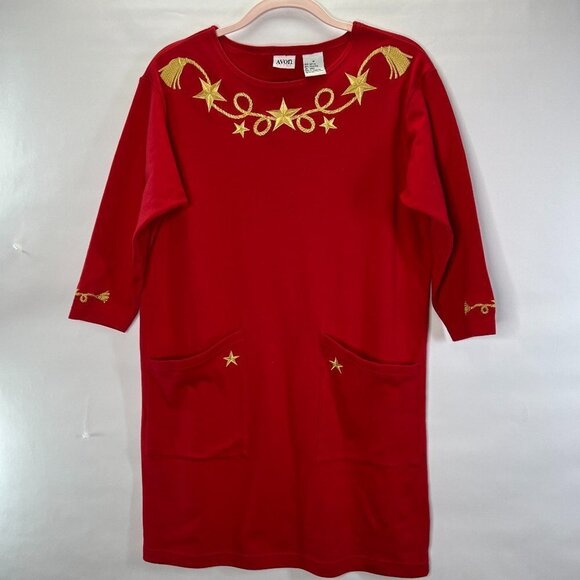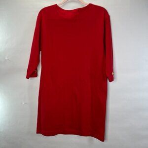 VINTAGE 80's Red Midi Dress Gold Stars Women's Size M