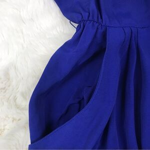VINTAGE 80s Royal Blue Golden Girls Dress Big Cape Collar Long Sleeves Size 6