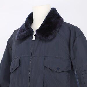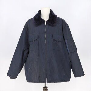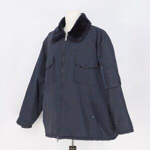 VINTAGE 80s SEARS Work Leisure Insulated Faux Fur Collar Navy Coat Jacket XXXL
