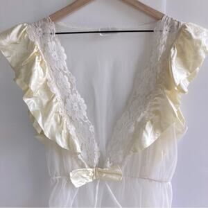 VINTAGE 80s Sheer Robe Women's S Peignoir Nightgown Negligee Feminine Romantic