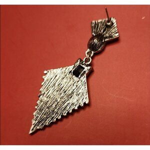 Elevated vintage glam with these 1980s pierced drop earrings, crafted in silver-tone metal with bold black glass accents. The striking Art Deco–inspired chevron design makes them a true statement piece—perfect for evening wear, cocktail looks, or collectors of retro jewelry. Lightweight yet dramatic, they pair effortlessly with both vintage and modern wardrobes.