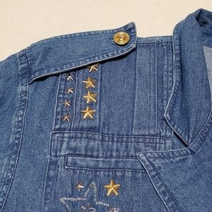 - Blue Chambray Denim with Gold Star Studs, Beaded Stars and Gold Buttons