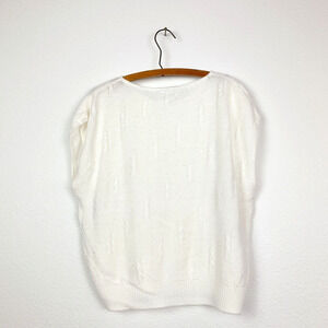 VINTAGE 80s Sweaters USA White Sleeveless Cap Sleeve Sweater Medium
