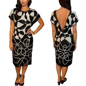 VINTAGE 80s TADASHI Sequin Mod Midi Dress