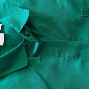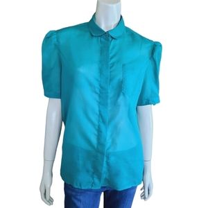 VINTAGE 80s Top Size Medium Semi Sheer Cotton Kelly Green Short Poof Sleeves