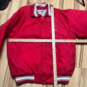 VINTAGE 80s Trucker Varsity Jacket Size L Retro Red Hartwell Preppy Streetwear