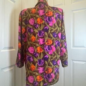 VINTAGE 80’s UNGARO TER BLAZER 100% SILK SZ 8 FLORAL CHIC PREPPY ECLECTIC STYLE